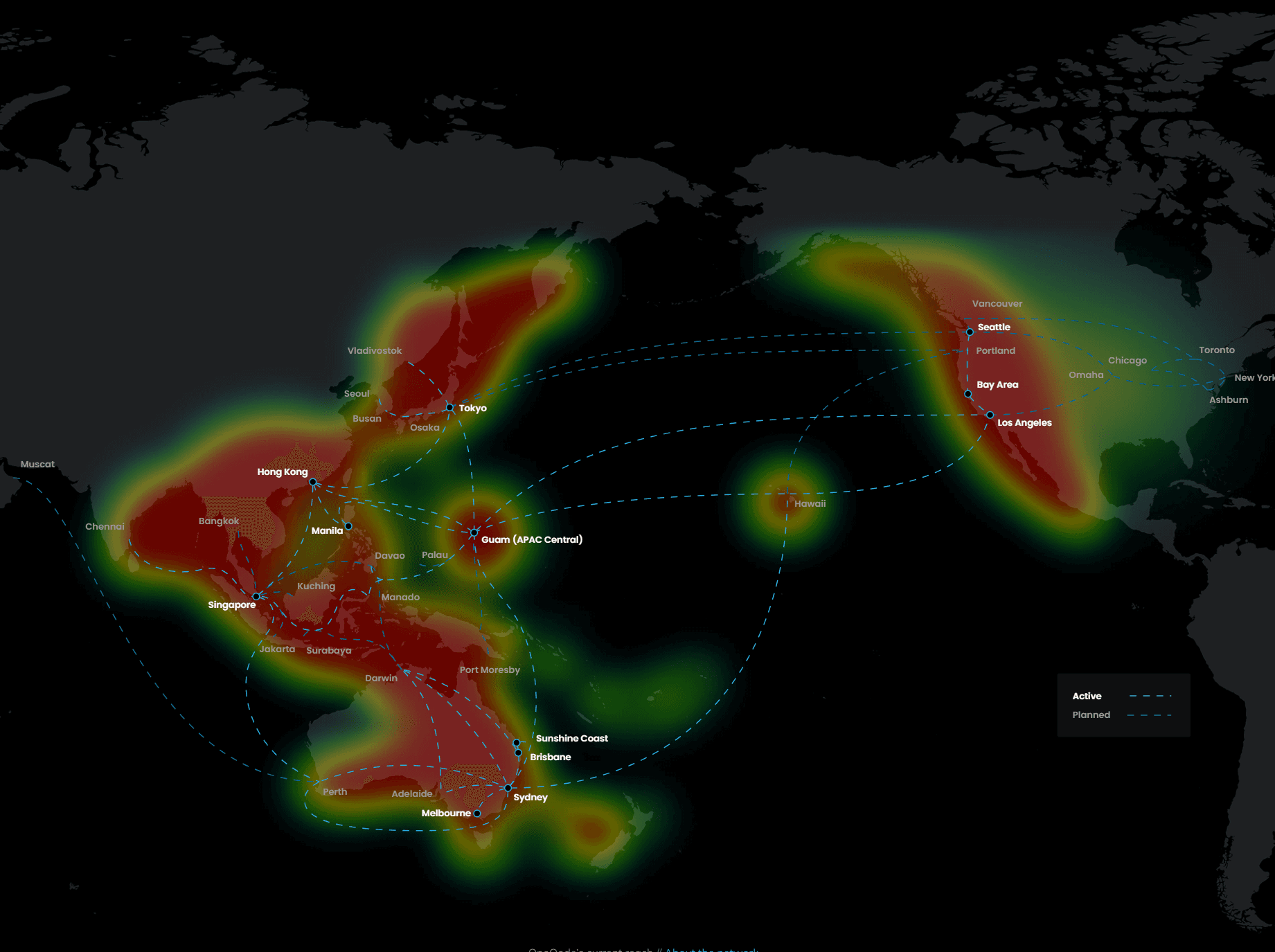 Our regional backbone uses network hubs we locate at ‘crossroads’, where sub-sea cables meet and we can serve the maximum number of people with acceptable latency. Our first connectivity hub is located in Guam.